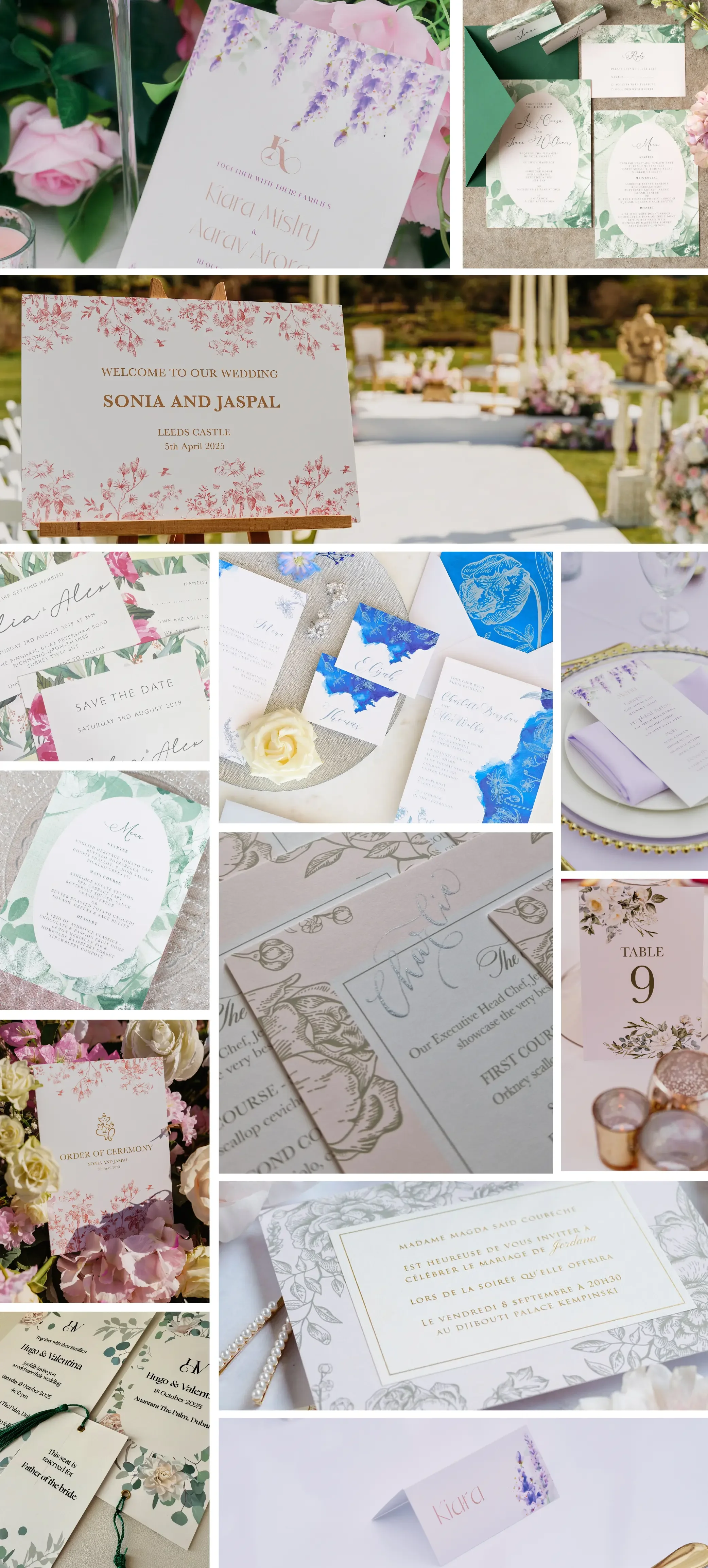Our luxury floral wedding stationery collection blends elegance, personalisation, and exquisite craftsmanship. Each invitation, menu, and place card is designed to reflect your style and bring your floral wedding vision to life. From delicate hand-painted details to premium finishes, every piece is tailored to create a truly memorable wedding experience.